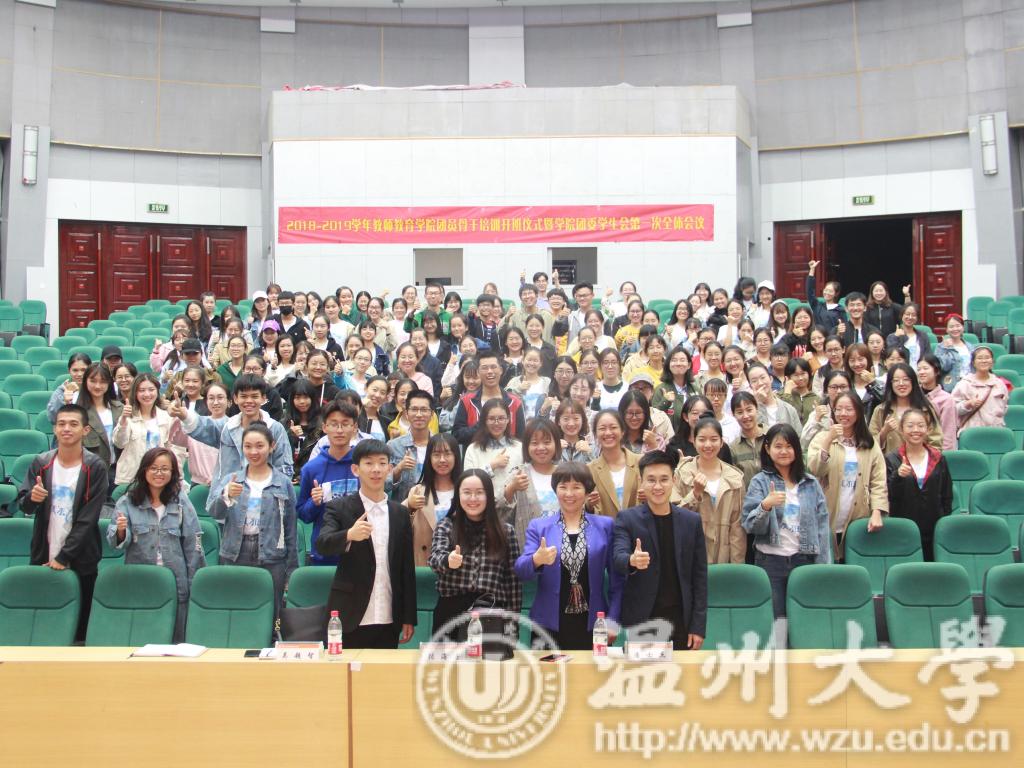为促进团学凝聚力的提升,增强团学成员的团员意识,2018年10月19日晚六点半,williamhill官网团员骨干培训开班仪式暨学院团委学生会第一次会议于九号楼报告厅正式举行。出席本次会议的有William威廉首席心理师张海音副教授、学生科辅导员吴超智老师、潘士杰老师及学生会全体成员。