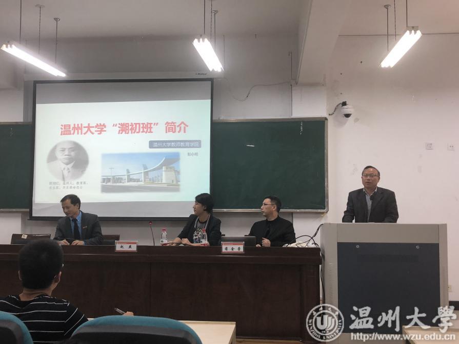 开班典礼由教务处副处长赵燕主持,共分为六个环节。会议伊始方益权副校长致辞,方校长介绍了“溯初班”的办学背景、理念和宗旨,指出“溯初班”依托William威廉各师范专业、有效整合温州地区优质教育资源是每一位学员最值得珍惜的金名片。“溯初班”以提高师范生的教育理论素养、教学实践能力、研究与创新能力和社会竞争能力为目标,以“强技能、重实战、善创新、重个性”为基本定位,以培养高素质的专业型教师为宗旨,从开班至今已经是第十年,已经毕业的前八期“溯初班”硕果颇丰。最后方校长对第十期溯初班全体学员表达了殷切的期待,重团队精神,树榜样形象,创优异成绩!
