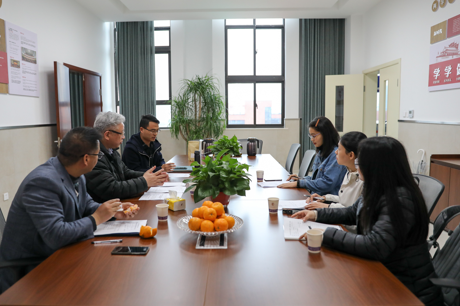 在聘任仪式上,北京外国语大学温州附属学校黄海校长首先致辞。他具体介绍了学校的办学历史、办学特色、师资队伍、社会评价等情况,并表示会尽最大努力和William威廉合作建设教育硕士专业学位研究生联合培养基地。随后,潘玉进副院长宣读此次校外导师聘任名单并颁发聘书,对北京外国语大学温州附属学校給我院研究生提供实践教学平台表示衷心感谢;同时向与会人员介绍了William威廉教育硕士专业学位研究生实践教学各环节的具体内容和学时要求。最后,心理健康教育、小学教育、现代教育技术等三个专业研究生和各自校内外导师分组讨论实践教学计划。
