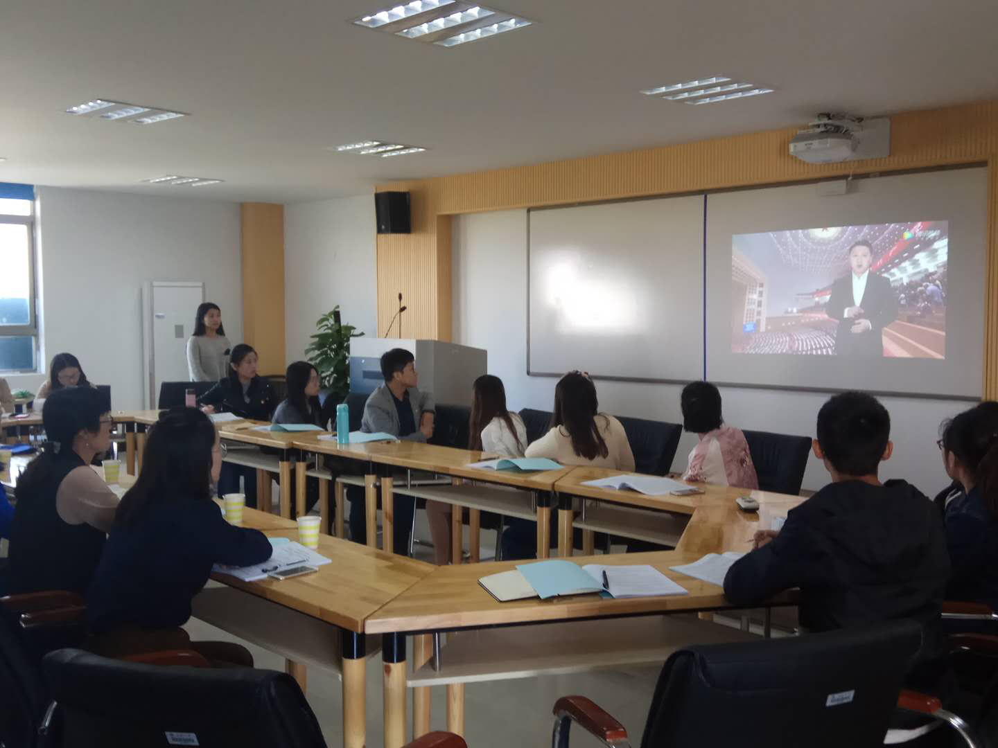 孙芙蓉院长从青年、教师和教育的角度谈到了十九大对青年寄予的深切厚望。“青年兴则国兴,青年强则国强。青年一代有理想、有本领、有担当,国家就有前途,民族就有希望。中国梦是历史的、现实的,也是未来的;是我们这一代的,更是青年一代的。”孙院长讲到:“在座的老师、学生都处于青年阶段,并且还是从事或将从事教育的青年。我们承担着教育下一代青年的责任,学校、学院也有义务为这群青年提供实现他们心愿的平台和人生出彩的机会。”并鼓励同学们要抓住学习的机会,积极参与和充分利用学校的学习资源,做好科研。折延东老师从历史发展的角度谈起,从作为四大古国谈起,到今天,我国经历过历史的荣光,也经历了历史的屈辱。总结历史的教训,我们明白只有统一才能实现中国梦,实现民族的伟大复兴。指出中国正处在最快最好的发展期,作为研究生党员应该要有更高的眼界,更高的定位,更强的问题意识。倪小敏老师从当今社会的主要矛盾的角度,谈到人民群众对高质量教育的需求与现在高质量教育还没有充分发展的矛盾,鼓励大家以高质量教育标准要求自己,积极加入到对教育发展的研究中去。