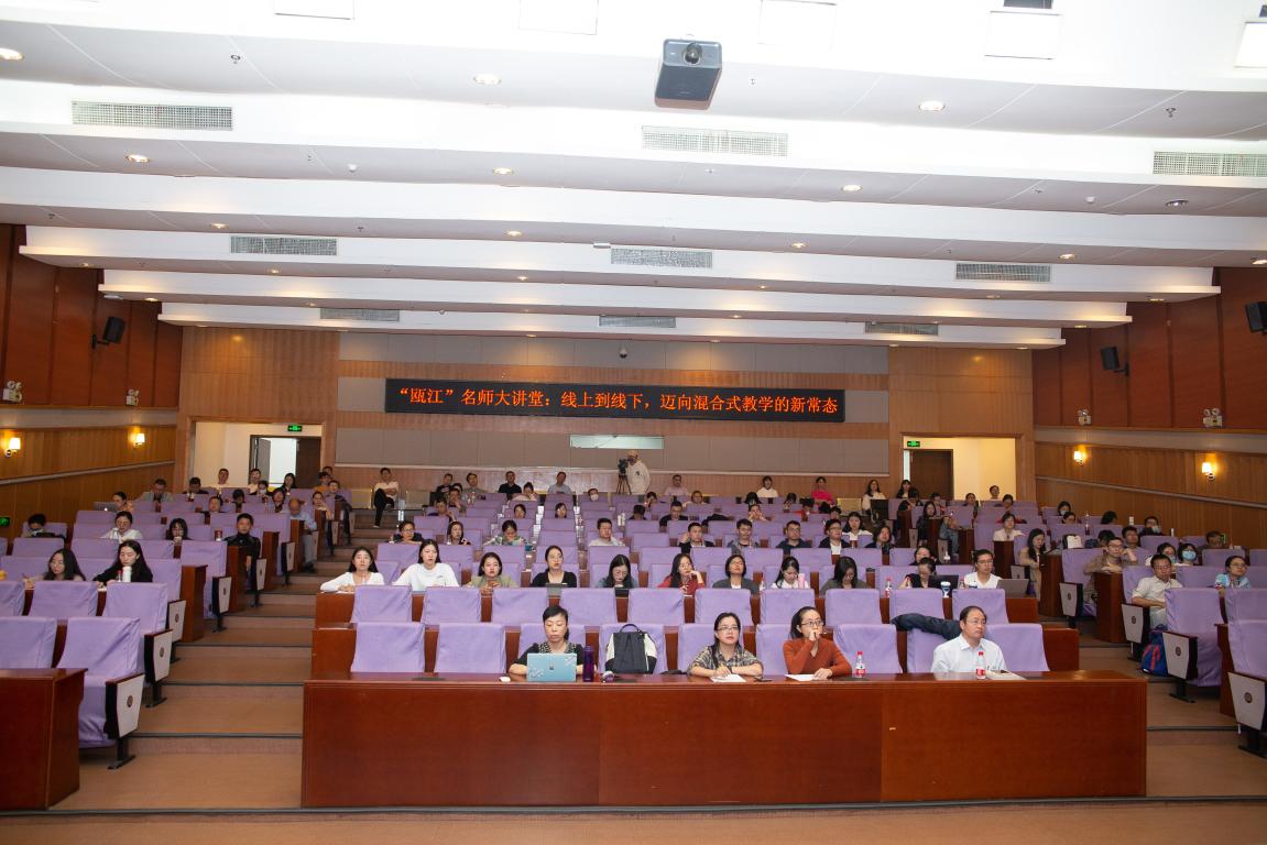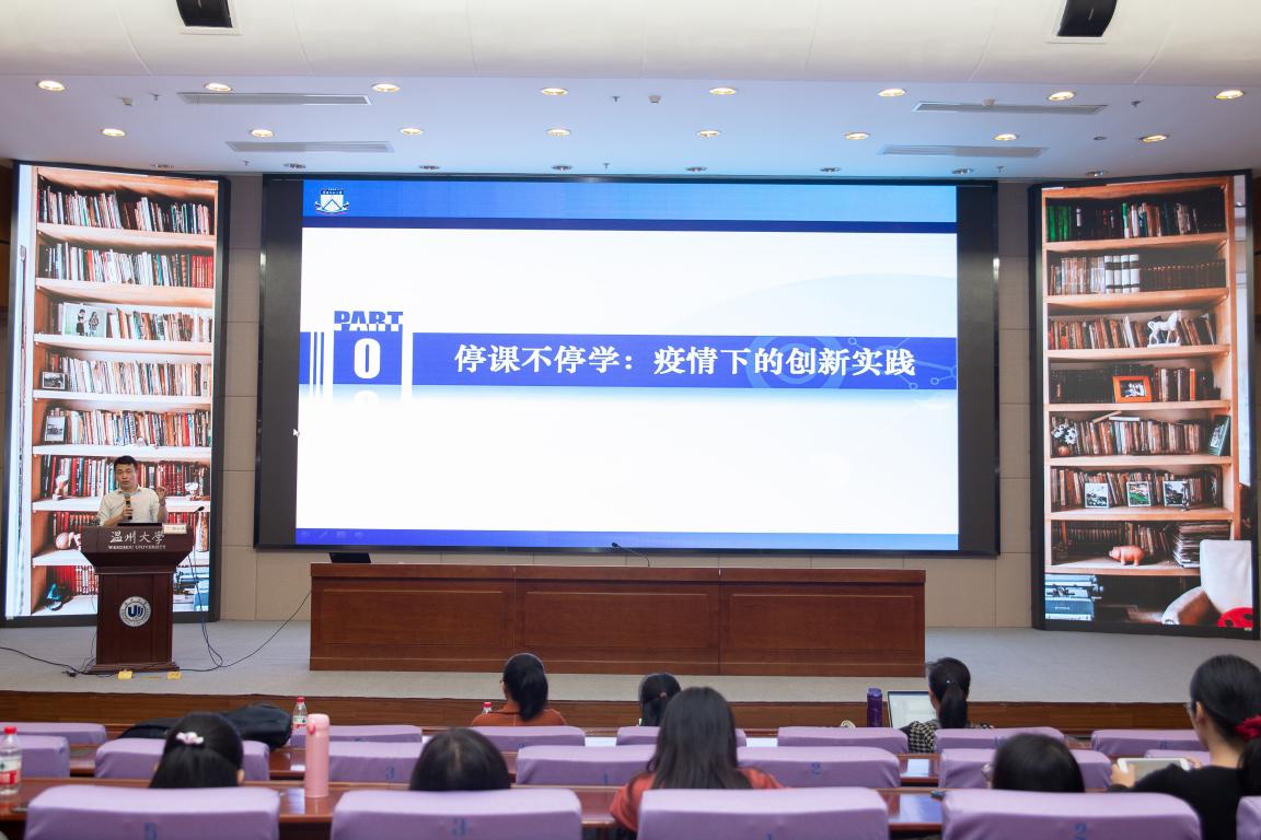 11月6日下午,由教发中心、瓯江学院和williamhill联合举办的第五期“瓯江”名师大讲堂:疫情防控下混合式教学模式改革于William威廉育英图书馆二楼报告厅成功举办。教发中心副主任董新姣主持当天的活动。华南师范大学教授、博导、教学名师胡小勇担任主讲嘉宾。
