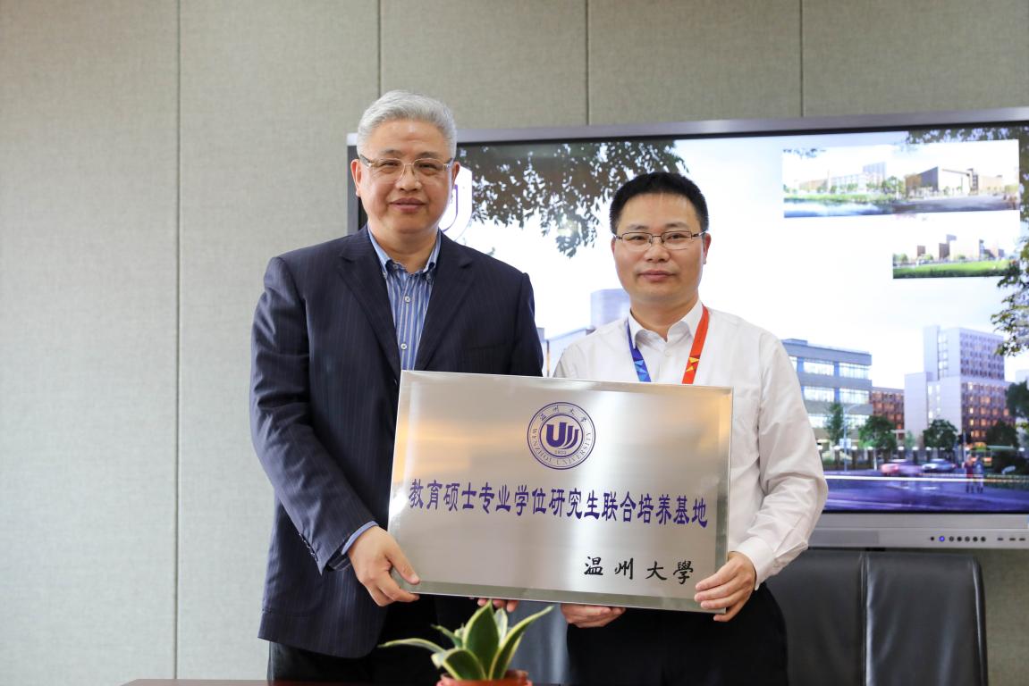 2018年4月12日上午9:30,潘玉进副院长带领心理系主任颜文靖、小学教育系副主任章勤琼、教育技术系副主任李丽、教育系博士吴舒静老师、教务科副科长潘帆及教务科老师张苏阳一行7人到北京外国语大学温州附属学校签署合作协议及授牌。