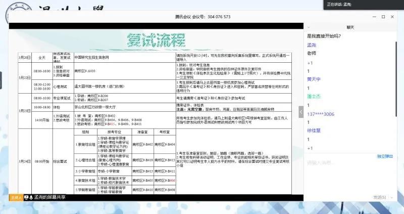 疫情非常时期,为帮助学子调整心态、认清形势、明确要点、积极应试,3月11日晚,williamhill召开线上考研复试经验分享交流会。我院党委副书记彭小媚,学工办辅导员潘士杰老师参与本次交流会。会议由潘士杰老师主持。学院19级心理健康教育方向在读研究生孟尧、15级小学教育毕业生,现云南民族大学19级课程与教学论方向研究生黄天宇带来了干货满满的研究生复试与调剂经验分享。
