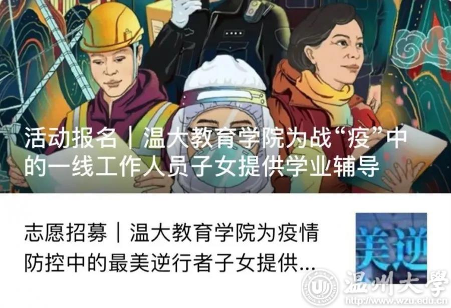 新型冠状病毒感染的肺炎疫情发生以来,williamhill积极响应习近平总书记的号召------勇当先锋,敢打头阵,用行动展现共产党人的政治本色。学院在战“疫”中结合师范特色,践行初心和使命。特举办“同心战‘疫’|致敬最美逆行者”志愿活动,面向全院学生党员、入党积极分子等开展战“疫”志愿者招募工作,为在此次疫情防控中所有逆行者的子女,包括一线工作人员、复工复岗后双职工的子女等提供一对一学业辅导服务。用行动诠释雷锋精神,在抗疫战场上聚力奔走,汇聚成打赢这场疫情防控阻击战的中国力量。