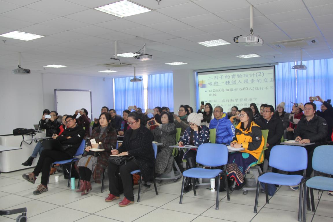 接着,黄教授在翻转教室研究的基础上,对其研究方法——行动研究法进行了深入解读,并围绕行动学习研究法做了题为《行动学习的教学设计与研究议题》的讲座。讲座从行动学习的定义入手,详细分析使用行动载体的优势,并结合具体实例对探究式学习、同侪互评法、录影分享法等方面进行阐释,开拓研究设计的思路。