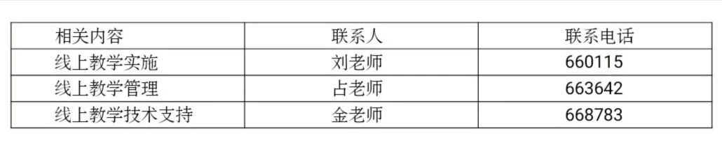 2月17日全校开学,从2月24日开始至正式返校前的特殊时期开展线上教学,确保教学计划的实施,课程线上教学时间必须与教务管理系统中课表时间一致,线上教学必须与线下教学实质等效,教学工作量同等计算,如有特殊情况需办理调停课手续。具体安排如下: