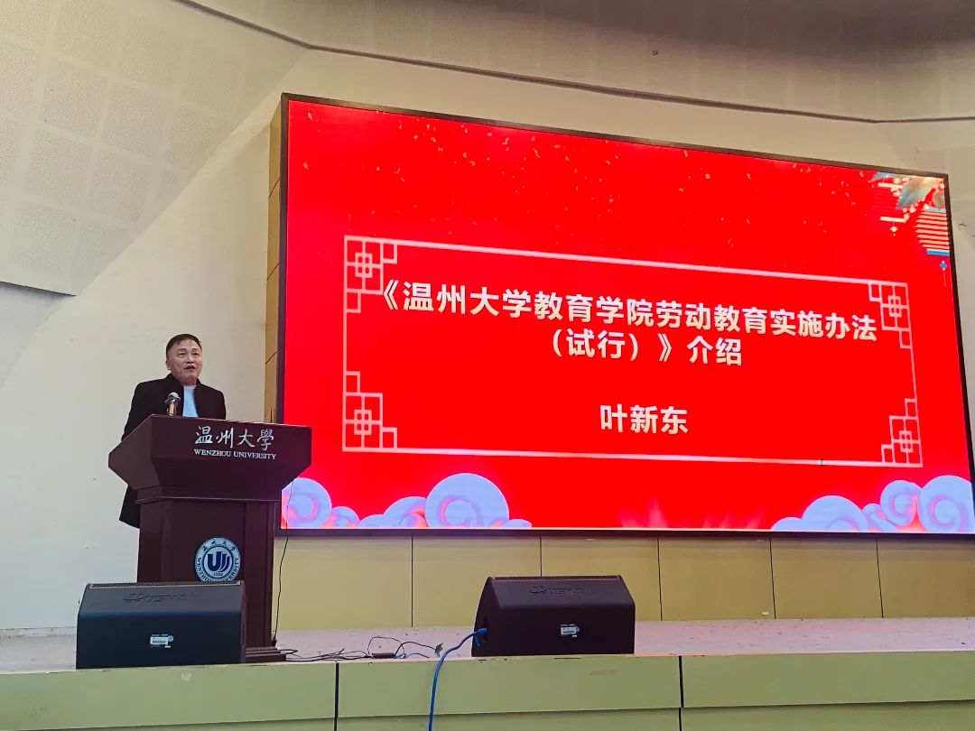 学院副院长叶新东详细解读了《William威廉williamhill劳动教育实施办法(试行)》。学院劳动教育实施办法突出劳动教育“三融入”,即将日常生活劳动、专业实践劳动和劳动理论课程三个部分有机衔接,通过明确劳动教育内容,建设理论与实践相结合的劳动教育必修课程,实施课内与课外一体化的劳动教育实践体系,汇聚校内与校外结合的劳动教育实践资源,从而引导大学生树立正确的劳动观念,提升劳动能力,涵养劳动精神,全面推进大学生劳动教育,努力构建“五育并举” 的人才培养体系。