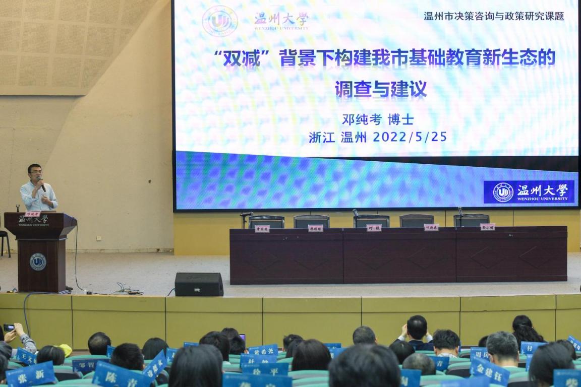 学院教职工大会结束后,学院召开全院教职工理论学习会。会议邀请学院邓纯考博士做《“双减”背景下构建我市基础教育新生态的调查与建议》专题报告。该报告近日得到浙江省委常委、温州市委书记刘小涛同志和温州市委副书记、温州市市长张振丰同志的肯定性批示,很好地反映了我院教师在参与政府决策咨询中发挥的积极作用。