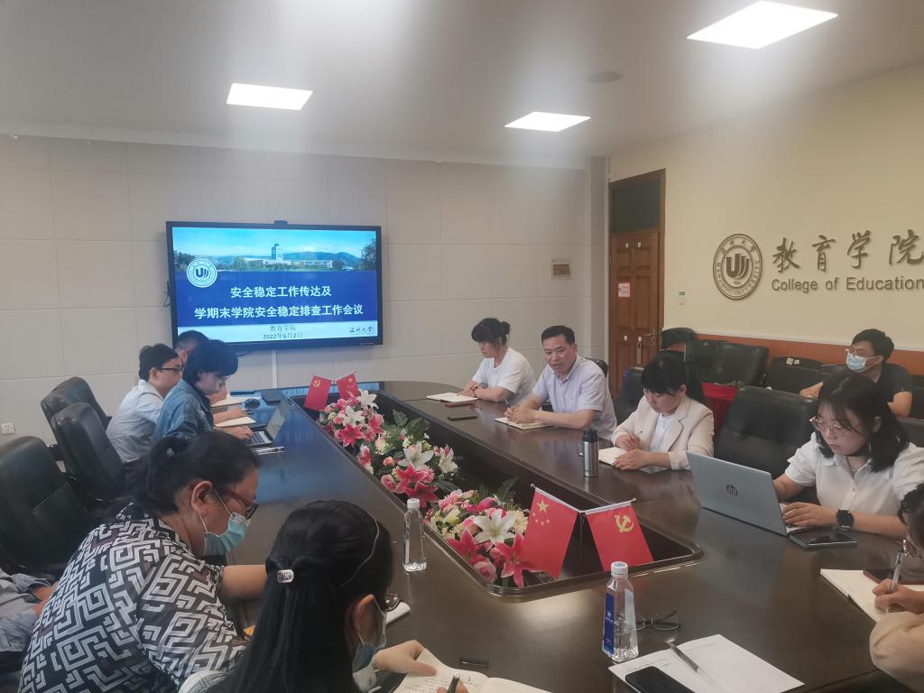 党委书记何毅做总结讲话。何书记强调,临近期末,学院工作面临学生毕业离校、就业压力、疫情防控等多重挑战,学院各系、各科室要在思想上高度重视日常工作中存在的安全稳定风险和隐患;密切关注并及时排查疫情防控、师资队伍、实验教学、学生管理等工作中存在的安全稳定风险点;严格落实工作责任,加强安全教育和安全管理,确保学期末各项工作平稳有序开展。