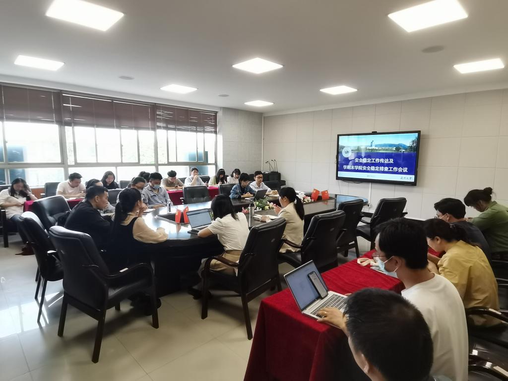 章园园副书记传达了学校近期安全稳定工作会议的有关精神,对疫情防控、消防安全、网络舆情、反诈工作、意识形态、师德师风、毕业生就业等方面工作做了重点说明。