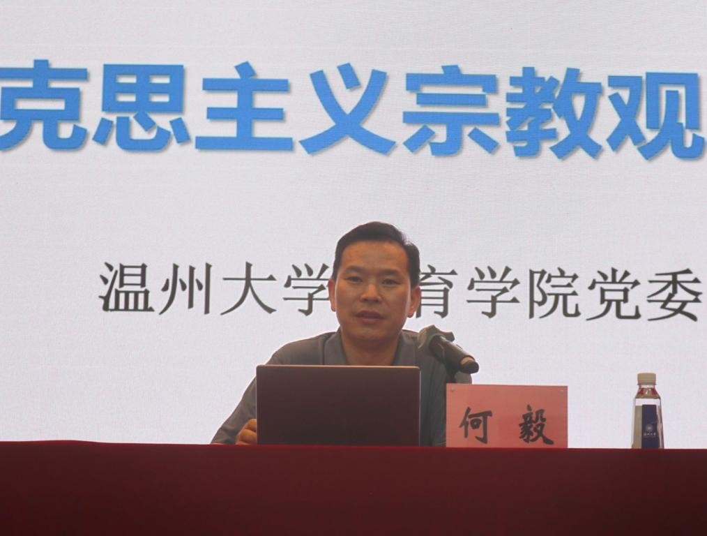 全国宗教工作会议2021年12月3日至4日在北京召开,习近平总书记在会上发表重要讲话。何毅书记从世界宗教分布、世界信教人口地区分布、中国公民信仰宗教现状出发,围绕马克思主义宗教观,他从马克思主义宗教观的哲学基础、马克思主义宗教观的中国化、我国宗教工作基本方针、我国宗教信仰自由权利与义务、我国处理宗教事务的基本原则和法律规定等方面进行阐释和论述,坚持用马克思主义立场、观点、方法研究宗教问题。他结合《中华人民共和国宪法》《中华人民共和国教育法》《宗教事务条例》《中国共产党章程》《中国共产党纪律处分条例》《普通高等学校学生管理规定》等,强调要全面贯彻党的宗教工作基本方针,坚持我国宗教的中国化方向,积极引导宗教与社会主义社会相适应。他告诫共产党员要做坚定的马克思主义无神论者,共青团员也不能信教,全体学生要坚决抵制邪教。