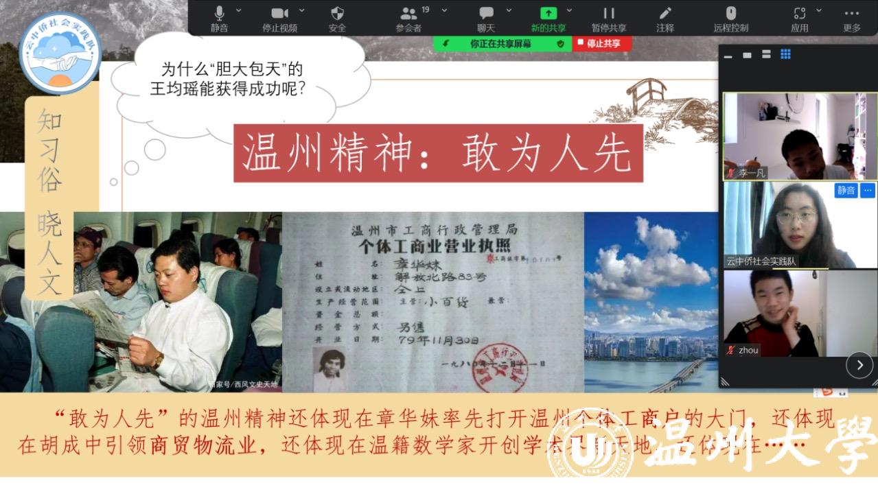 据悉,温州市是全国知名的侨乡。温大“云中侨”实践队成员围绕“溯中国源,筑华夏梦”和“邂逅瓯乡,云游温州”两大主题,探索性、针对性地尝试丰富华侨华人儿童“家国教育”系列课程,融入中国国旗、历史文化、温州精神、地方美食等知识,并借助智慧锦囊、心愿漂流瓶等多样活动,打开海外侨童了解中国的窗户,搭建培育家国认同桥梁。