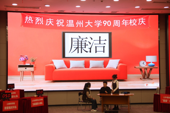 本次比赛共设必答题、抢答题、危险题、幸运题四个环节,并在其中穿插观众答题、猜歌、猜剧等互动。8支进入决赛的代表队准备充分、精神抖擞、认真作答,气氛紧张而热烈,精彩的回答不时博得观众的阵阵掌声。温大青年学子充分展示出扎实的理论基础和沉稳的心态,为弘扬廉洁文化增添了多元的青春色彩。