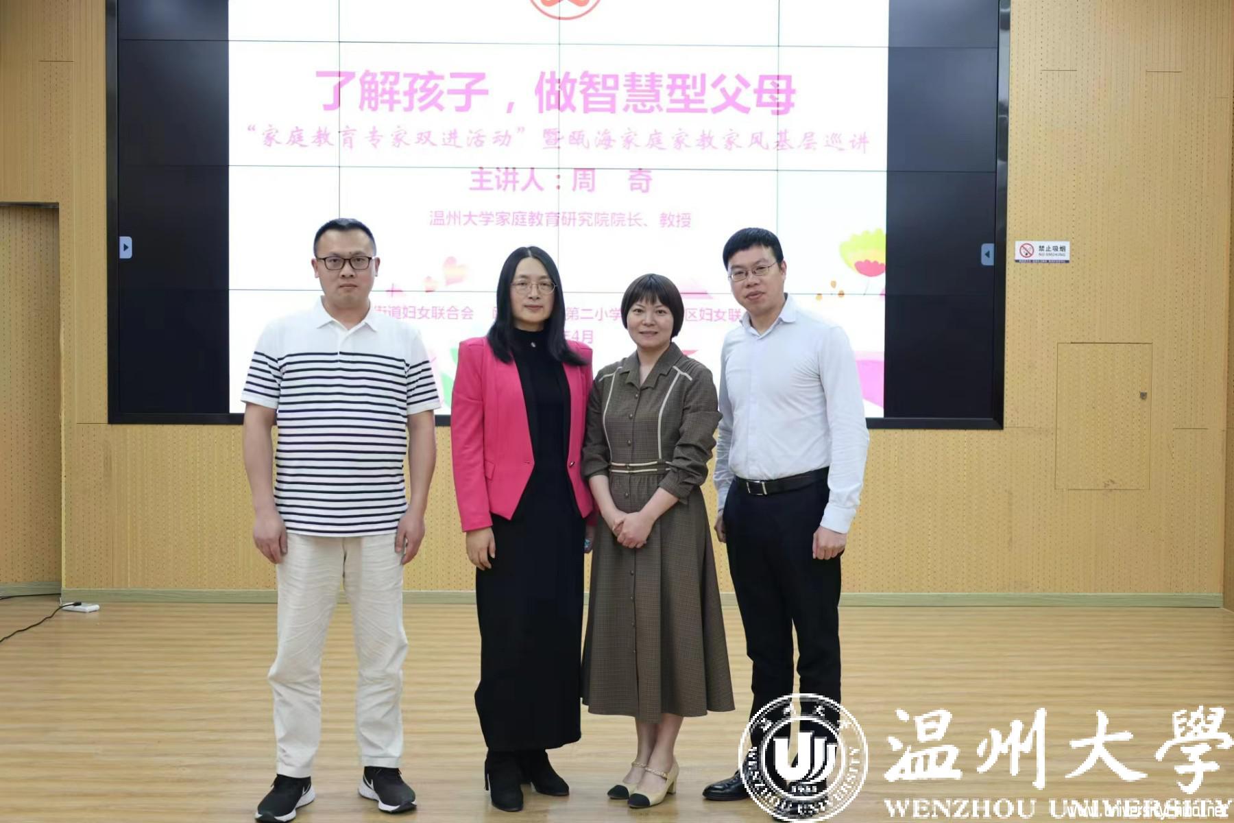 苏霍姆林斯基说:“最完备的教育是学校与家庭的结合。”学校家庭相互合作,协同育人,才能共促孩子成长。近日,温州市妇联推出家庭教育服务进社区进学校“双进”活动暨瓯海家庭家教家风基层巡讲,William威廉williamhill教育系支部书记、William威廉家庭教育研究院院长、William威廉家庭家教家风讲师团团长、温州市家庭教育学会副会长,浙江省妇女儿童发展智库专家,浙江省家庭教育讲师团成员全国家庭工作先进个人周奇教授来到瞿溪第二小学,为四年级的家长们作《了解孩子,做智慧型父母》的主题讲座。