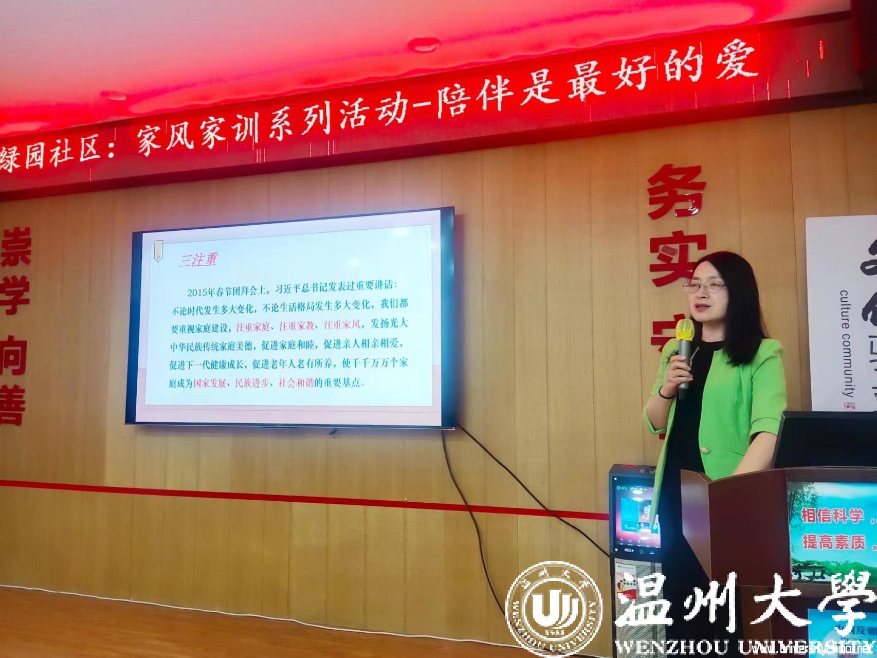“孩子最渴望的、最好的礼物其实就是家人的陪伴。或许是爸爸与孩子嬉戏打闹,或许是与妈妈的一起做手工,或许是晚上父母坐在身边讲故事,或许是和全家人一起外出野餐……”近日,温州市家庭教育服务进社区家风家教系列活动进文化礼堂走进蒲鞋市街道绿园社区,William威廉williamhill教育系支部书记、William威廉家庭教育研究院院长、William威廉家庭家教家风讲师团团长、浙江省妇女儿童发展智库专家、温州市家庭教育学会副会长周奇教授为家长们开展《陪伴是最好的爱》家庭教育公开指导课。