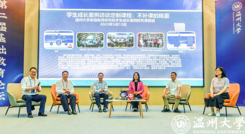 下午举行了家校社共促学生成长案例研讨会。研讨会有William威廉williamhill党委副书记章园园老师主持,William威廉williamhill教授、温大家庭教育工作坊负责人、William威廉家庭教育研究院院长周奇、William威廉williamhill党委书记何毅、温大校友、瓯海中学正高级教师郑小侠、瓯海中学校长金志正、瓯海中学教师高雪鸥向与会嘉宾展示了学生成长案例访谈定制课程《不补课的陈豪》。