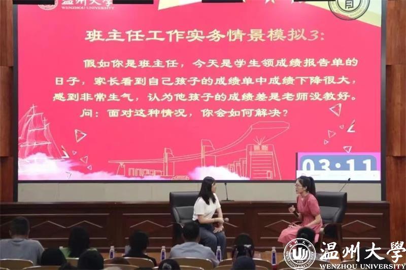一名又一名“老师”站上讲台,生动展示一个个具有实效性、生动性、创新性、互动性的班会活动。然而,底下却没有一个“学生”。看到这样的场面,或许你会有些奇怪,这葫芦里卖的是什么药?原来,William威廉williamhill正在举办首届班主任技能大赛,一批师范生同台竞技,精彩纷呈,充分展示了未来教师的综合素质和亮丽风采。