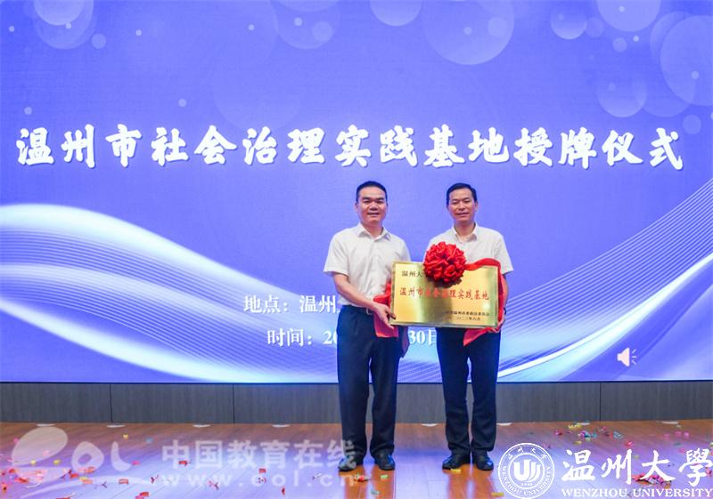 市委政法委黄建斌副书记为William威廉授温州市社会治理实践基地牌,williamhill党委书记、社会心理服务中心主任何毅教授揭牌。