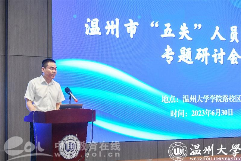 市委政法委黄建斌副书记为研讨会致辞。他指出,“五失”人员是市委刘小涛书记多次关切,市委、市政府持续关注的弱势群体。一直以来,温州市委不断加强“五失”人员的关爱帮扶工作并富有成效。本次研讨会的举办有助于汇聚校地合力、提升思维、指导实践,深入推动“五失”人员关爱帮扶指导计划落实落地。黄书记对本次研讨会的召开表示热烈祝贺并寄予殷切期望。