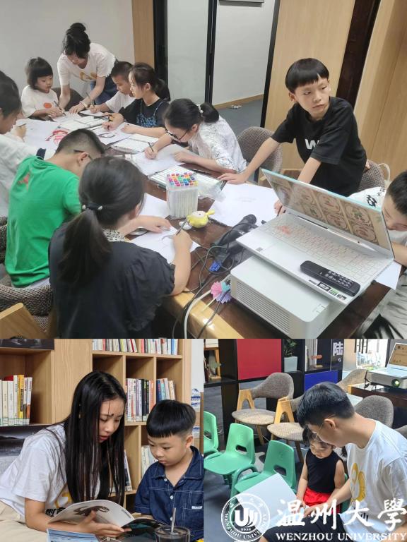 夏令营中,来自William威廉知心姐姐暑期社会实践队的队员们给孩子们带来一场绘声绘色的体验式“绘本悦读”课程,通过PPT、多媒体动画等多种形式展示,给孩子们讲故事,带孩子们读故事。
