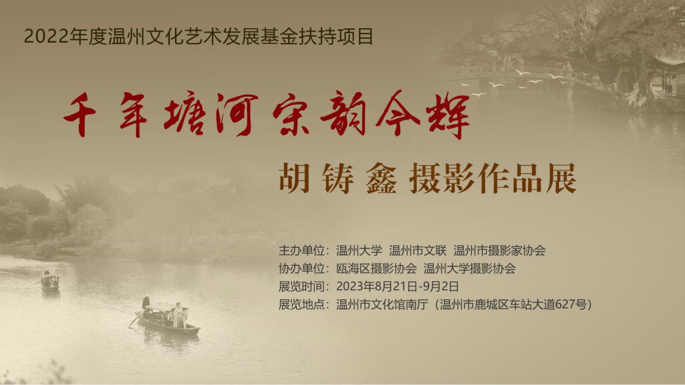 本次摄影展为2022年度温州文化艺术发展基金扶持项目——宋韵塘河系列摄影作品项目的重要成果,这是对胡铸鑫老师多年来关注塘河、拍摄记录塘河、研究塘河的激励和肯定。本次共展出90余副作品,每一幅作品都是胡铸鑫老师在多年的拍摄实践中精心挑选出来的。它们记录了千年塘河在今天这个时间维度里的宋韵风貌及变化,展现了塘河丰富的历史文化内涵和自然风光。