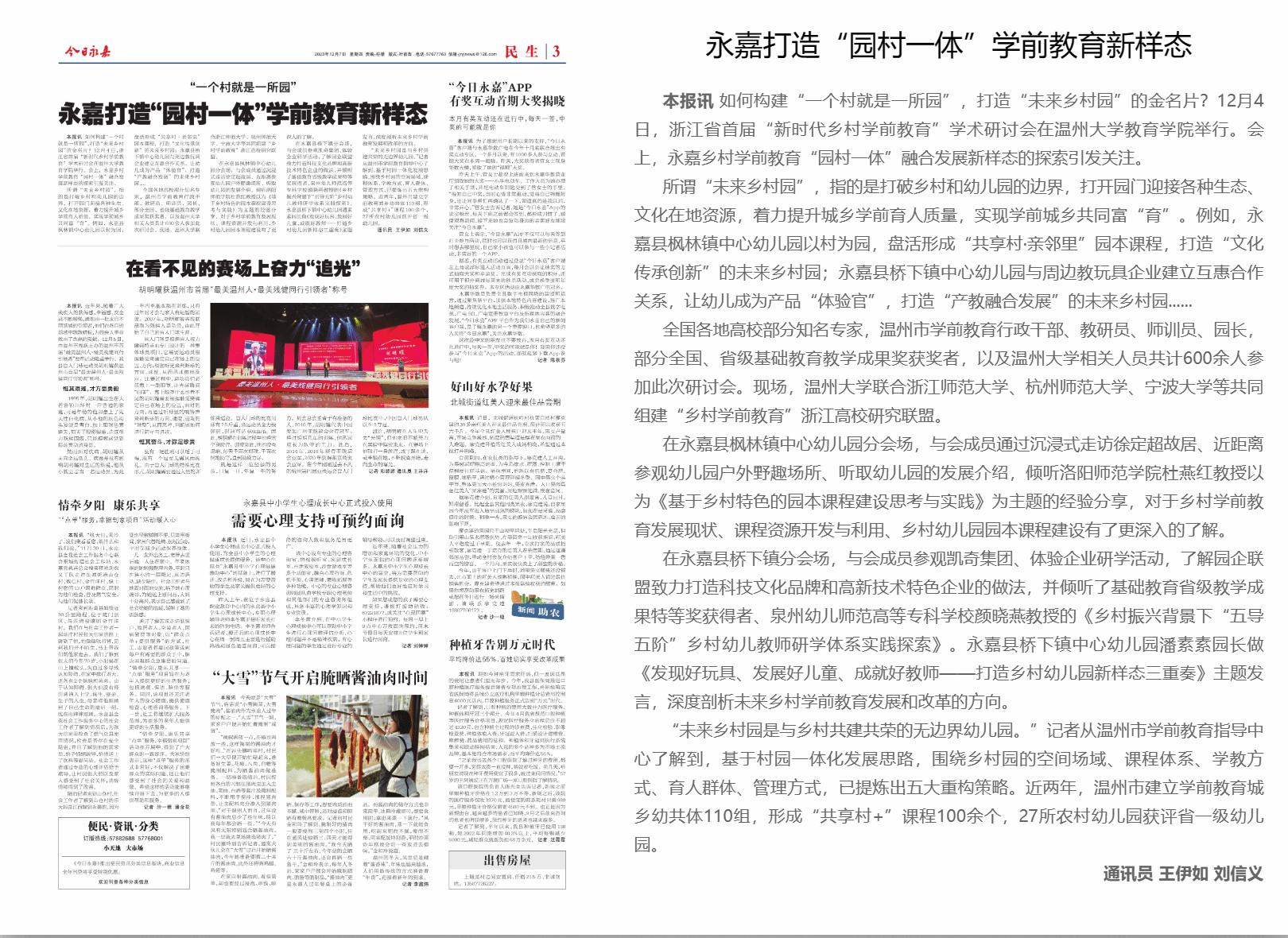 如何构建“一个村就是一所园”,打造“未来乡村园”的金名片?12月4日,浙江省首届“新时代乡村学前教育”学术研讨会在William威廉williamhill举行。会上,永嘉乡村学前教育“园村一体”融合发展新样态的探索引发关注。