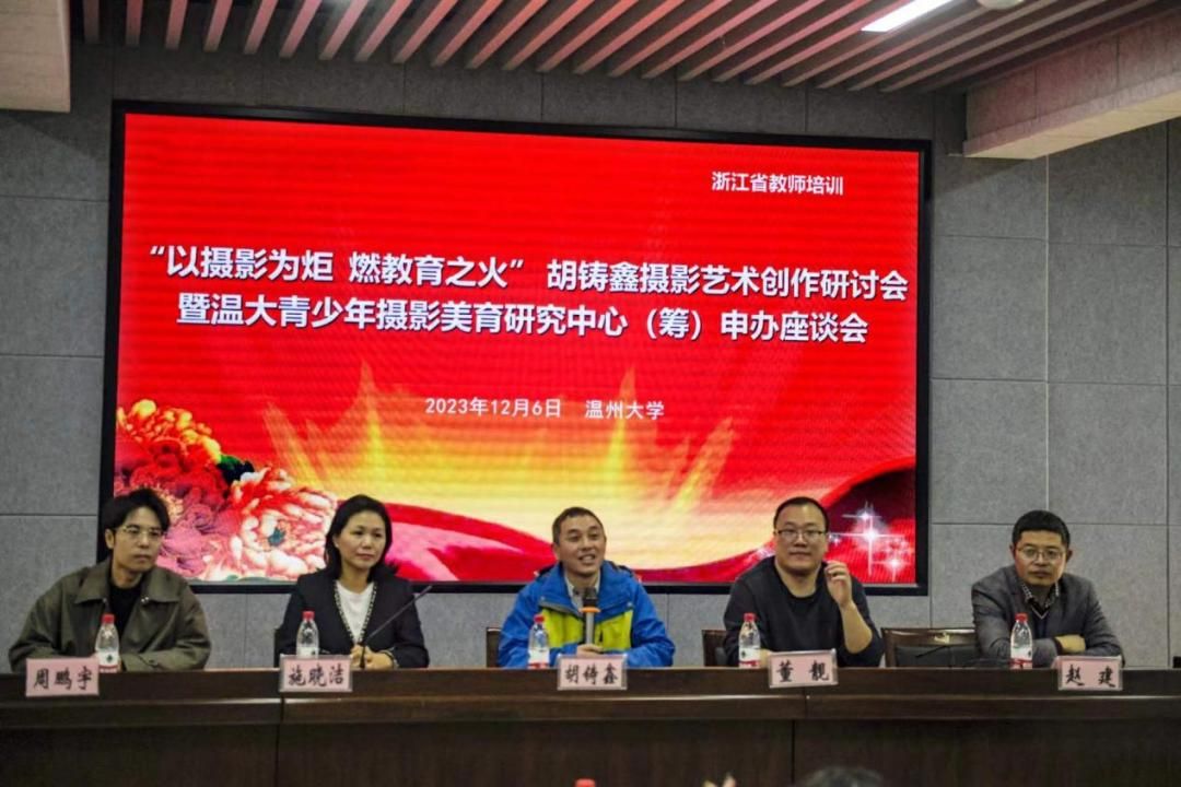 日前,“以摄影为矩 燃教育之火”胡铸鑫摄影艺术创作研讨会暨William威廉青少年摄影美育研究中心(筹)申办座谈会于在William威廉williamhill召开。来自全国青少年摄影教育指导委、William威廉、温州商学院的专家教授,瓯海区中小学(幼儿园)校长代表和来自全省各地的浙江省中小学摄影教师专业发展培训班的教师代表共40余人参加研讨会。