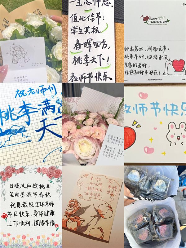 当天,同学们自发组织,来到班主任、辅导员以及任课老师的办公室。一张张贺卡载满学生对老师的情谊和感恩,一句句祝福传递着师恩载道恩如山,一声声“教师节快乐”在金秋的清晨格外温暖动听…… “教师承担着最庄严、最神圣的使命,作为师范生,‘立德修身、敬业立学’不是一句口号,而是我们的自觉追求。”23级小教专业的倪宸好同学说。