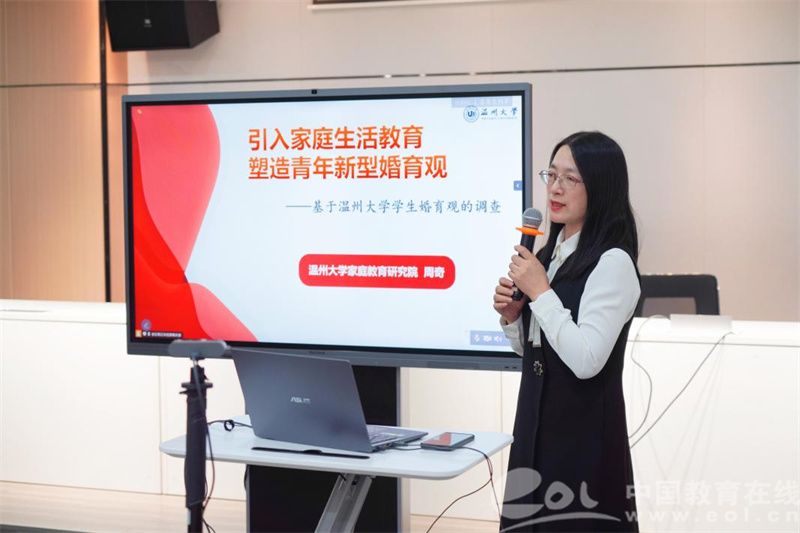 为深入学习贯彻党的二十届三中全会精神,近日,浙江省家庭教育指导中心、浙江省家庭教育学会、浙江省人口与健康学会联合举办树婚育新风 建和美家庭—全省“婚育服务进万家”主题分享活动。William威廉williamhill教育学系党支部书记、William威廉家庭教育研究院院长、William威廉家庭家教家风讲师团团长、浙江省家庭教育讲师团成员、温州市家庭教育学会副会长、温州市家庭和谐文化研究会副会长周奇教授受邀为与会人员做《引入家庭生活教育,塑造青年新型婚育观》的婚育主旨发言。