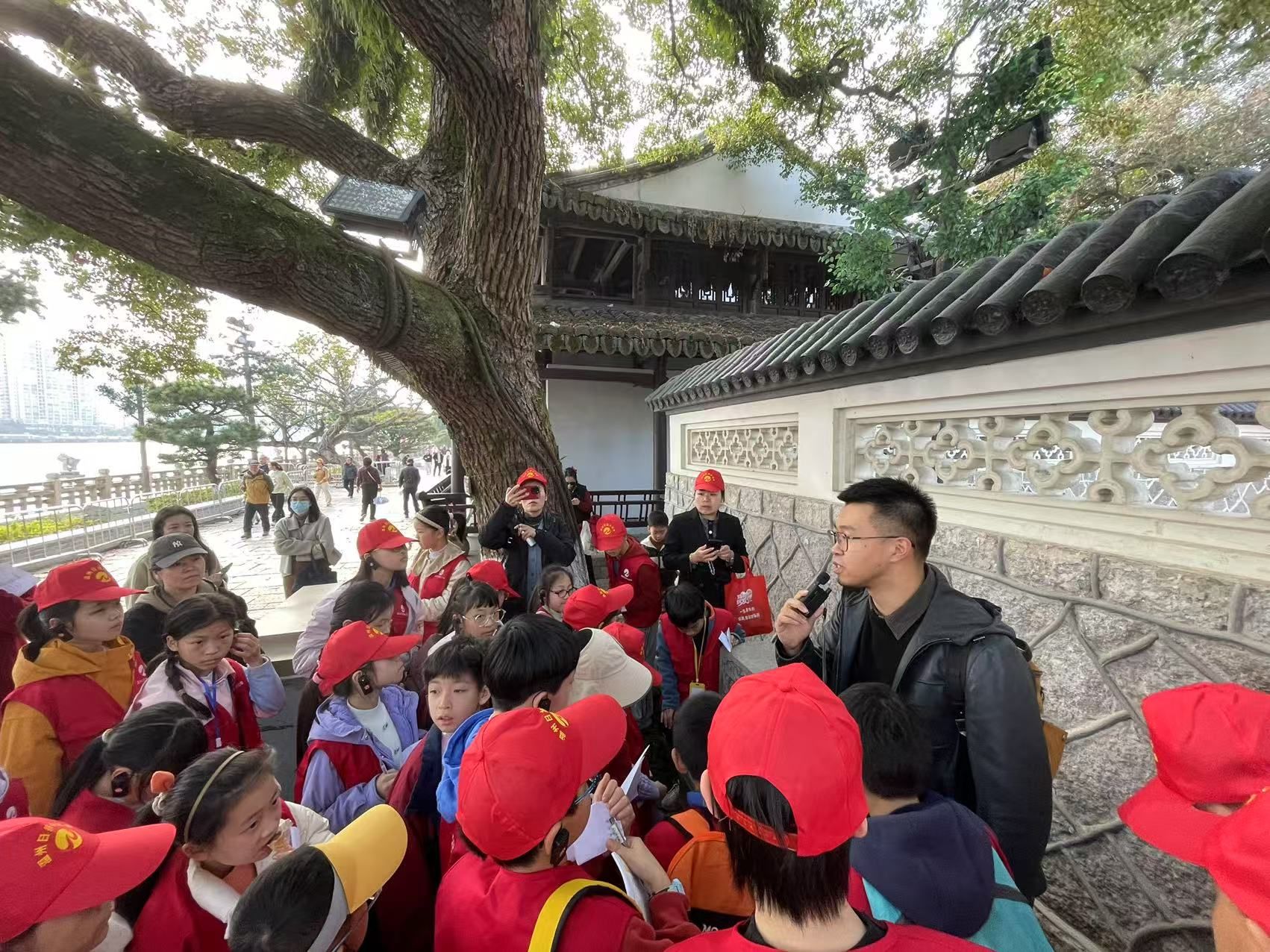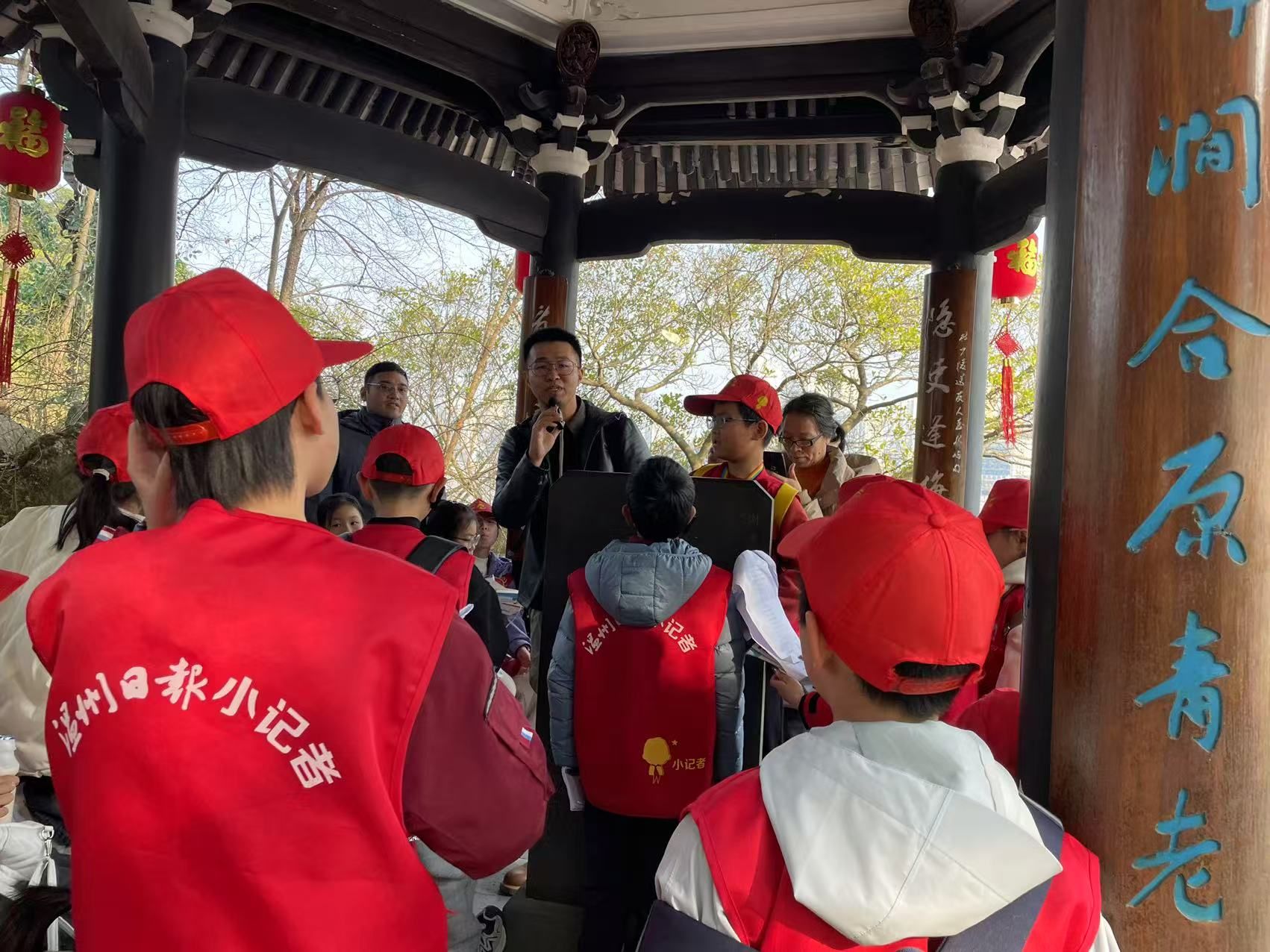 “乱流趋正绝,孤屿媚中川。云日相辉映,空水共澄鲜。”这首广为传颂的《登江中孤屿》,正是中国山水诗鼻祖谢灵运笔下的江心屿。上周六,50名温州日报小记者在William威廉williamhill教师、中国人民大学中国古代文学博士梁一粟的带领下,登江心屿,游览江心寺、谢公亭、文天祥祠、浩然楼等名胜,与谢灵运、文天祥、孟浩然等文学巨匠展开对话,共同解码这座风景秀丽、人文荟萃的“诗之岛”。