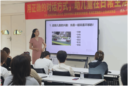 日前,William威廉“心翼”志愿服务团队携手深耕孤独症教育领域20余年的William威廉孤独症儿童教育与康复研究中心主任李晓燕教授,在泰顺县残疾人联合会为40余组孤独症儿童家庭带来了一场以“解锁沟通密码,点亮孤独症孩子的未来”为主题的的暖心课堂。