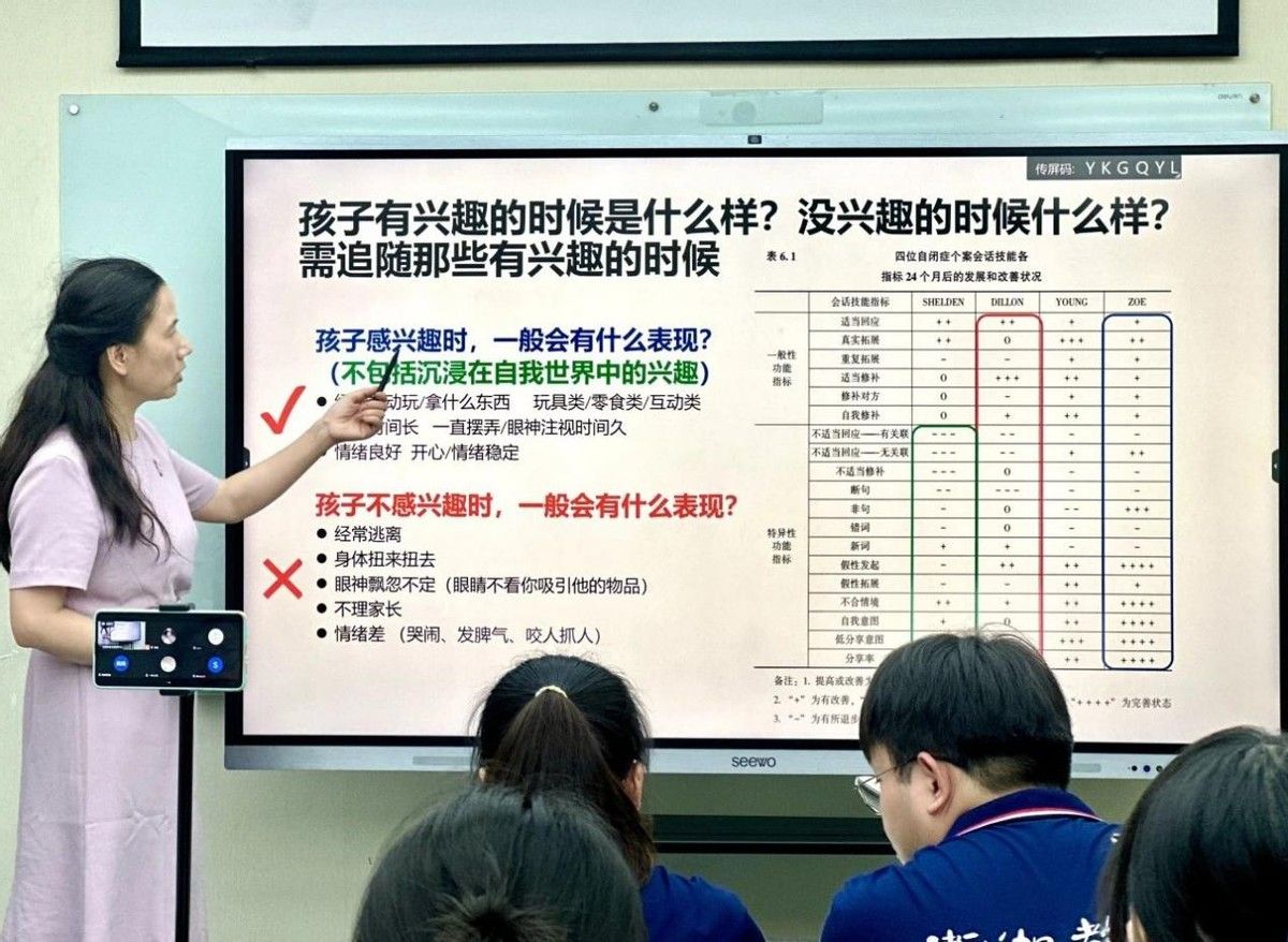 在李晓燕教授的干预模式中,家校联动成为推动孩子康复的重要引擎。教师团队的专业成长直接带动学生进步。目前,该模式已在温州小银河特殊教育学校、利宝特殊学校等数10所机构落地,形成了“教师成长-学生进步-家长支持”的良性循环。