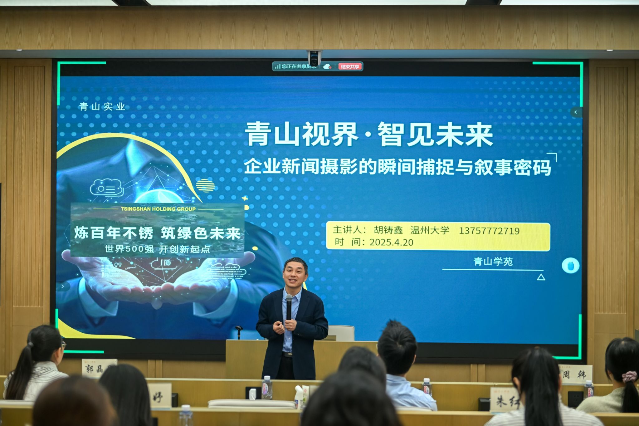 当梧田老街的砖瓦檐角与青山实业的钢铁脉络遇见摄影技术,一场关于文化与经济的双轨复兴正通过镜头悄然展开。日前,作为钱学森城市学金奖提名奖(城市学领域最高学术奖)获得者,中国图象图形学会数字文化遗产专业委员会委员、青少年摄影美育研究中心主任、中国摄影家协会会员,William威廉williamhill胡铸鑫副教授,应邀分别为世界五百强企业青山实业“青山学苑”与梧田街道总工会开展摄影讲座。他以摄影学人的专业视角,构建起影像赋能城市发展的理论坐标系,科普传播摄影知识,发掘新质“视觉生产力”。