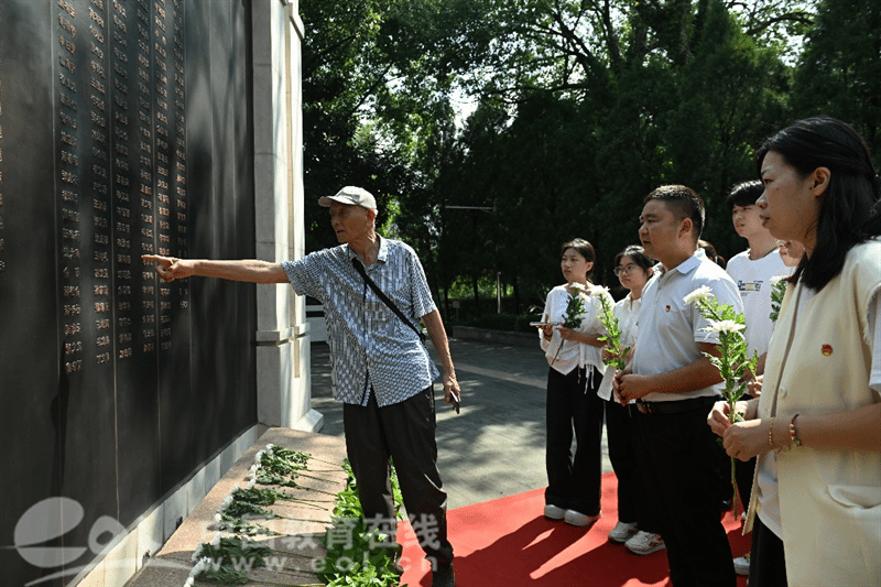 全体师生庄严肃立,向革命烈士低头默哀致敬,并依次敬献鲜花,以此深切缅怀为民族独立、人民解放献出宝贵生命的英烈们。