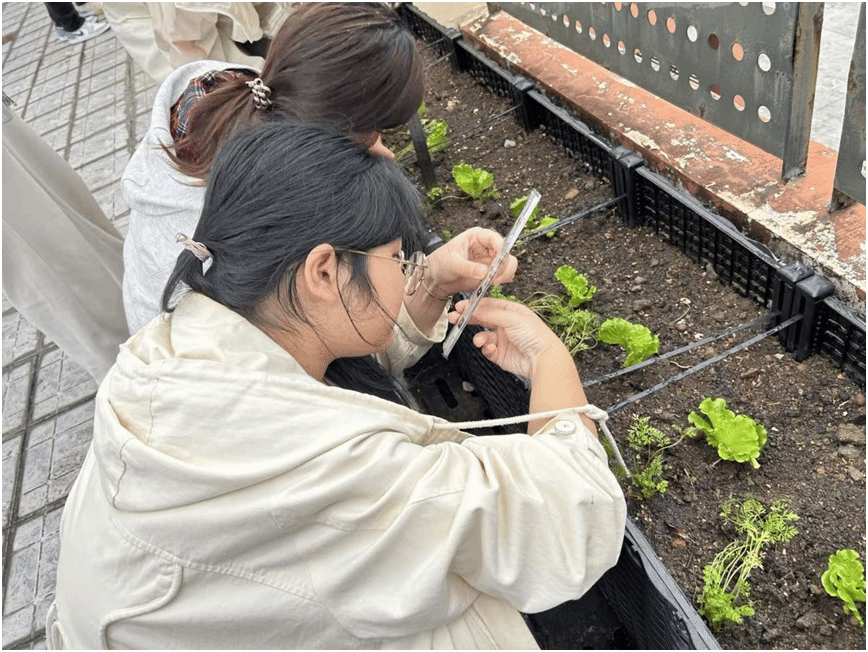 学生代表蔡佳雯在发言中表示:“‘空中微农场’让我们在钢筋水泥的城市中,得以亲近泥土的芬芳,见证生命从播种到收获的奇迹。这里不仅是劳动教育的课堂,更是我们放松身心、凝聚友谊的乐园。”她代表全体同学承诺,将用汗水耕耘青春,用劳动收获硕果,共同守护这片来之不易的绿色天地。