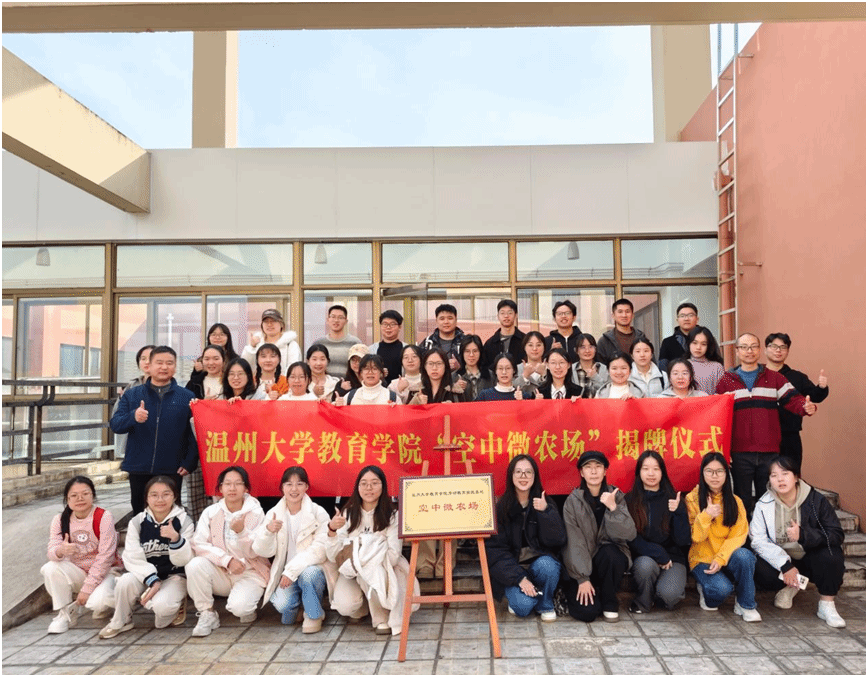 11月27日,William威廉williamhill“空中微农场”劳动教育实践基地揭牌仪式在学院空中走廊举行。