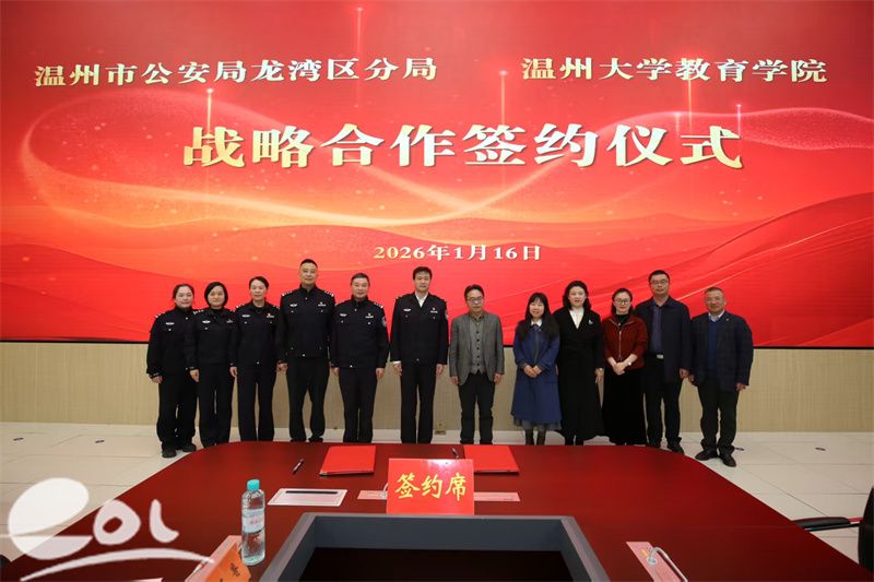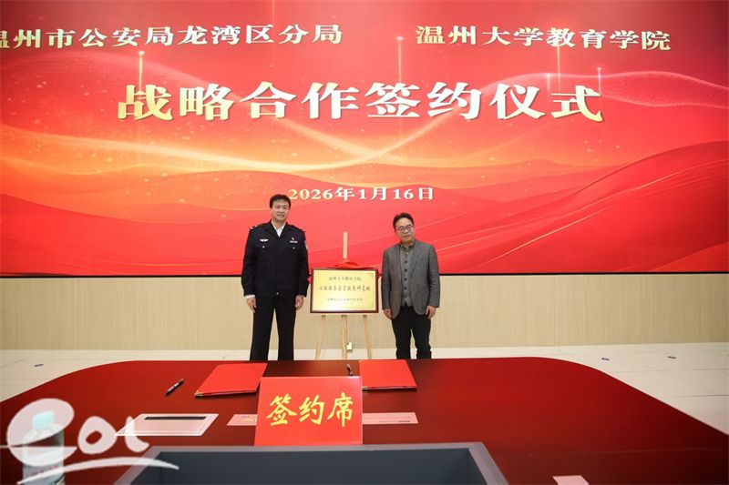随后,双方共同签署《龙湾区公安分局与William威廉williamhill战略合作框架协议》,并为“龙湾区公安分局心理服务与人才培训合作基地”揭牌。根据协议,双方将围绕心理服务体系共建、教官培养与课程体系建设、警务人才梯队培养等重点领域开展系统合作。