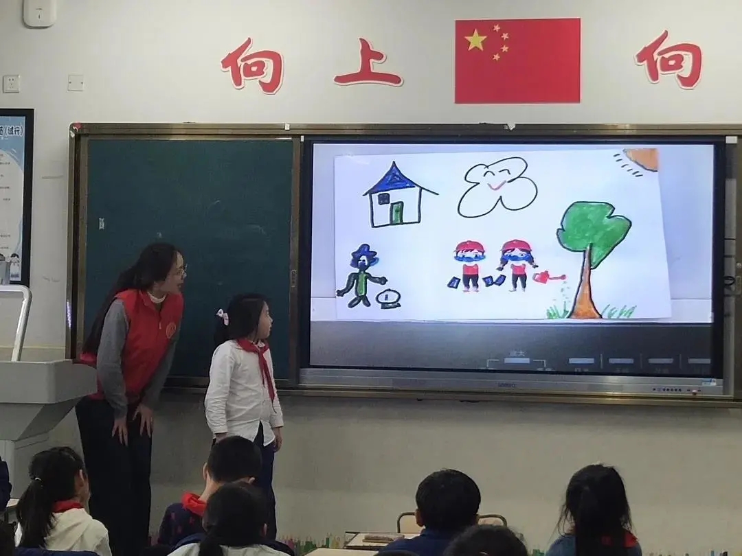课堂伊始,两个班的小老师通过图片引入本次课堂主人公——雷锋叔叔,通过视频与图片的形式全方面地展示雷锋叔叔的感人事迹与人生经历,采用了孩子们喜闻乐见的语言,深入浅出地介绍了雷锋叔叔,课堂上小朋友们积极配合,认真倾听,真挚而专注,在互动下,小朋友们收获颇多。
