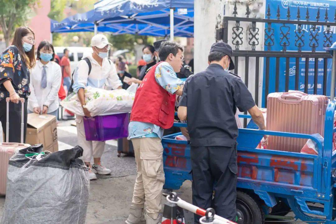 校园内,温情而充满创意的迎新标语随处可见,接驳车穿梭在校园为新生运送行李,“易班”等平台为新生提供温馨的在线咨询服务,学生志愿者们热情地引导新生领取物品、入住公寓,场面十分温馨。