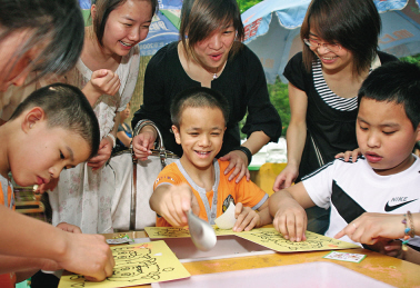 昨天,市儿童福利院的孩子们在williamhill官网大学生“知心姐姐”的带领下,来到市区中山公园玩沙画、做游戏,度过了一个愉快的“六一”儿童节。 翁卿仑 章志图 摄