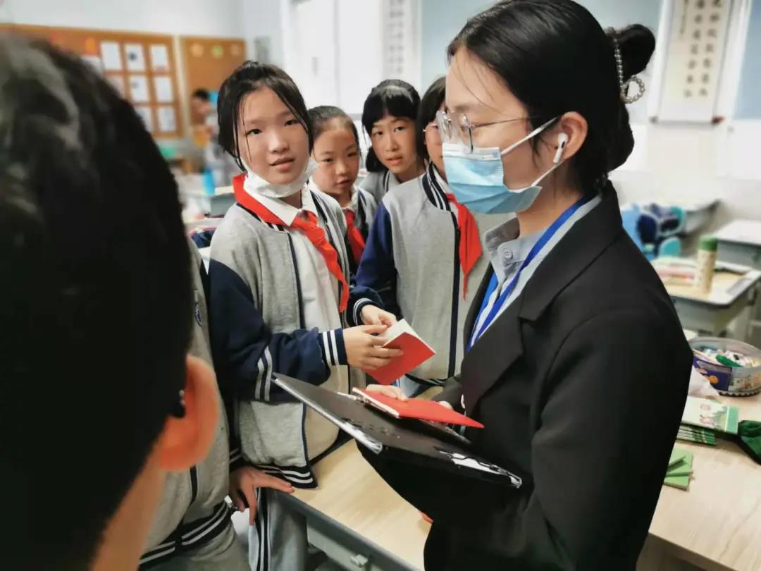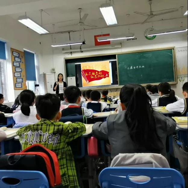 黄炜婷同志在北大新世纪温州附属学校开展了主题为“少年朱德的故事”的小课堂,向学生介绍朱德年少成长的故事,使学生从中汲取朱德同志在生活中积极向上和艰苦奋斗的精神,珍惜当下和平的幸福生活。郎晗笑同志在温州市广场路小学开展了《永不褪色的红色记忆——忆党的峥嵘岁月》教育活动。在活动中,介绍了党旗与中国共产党的由来,并组织学生开展“从小学党史,永远跟党走”主题探究讨论,深化知史爱党、知史爱国的思想。通过此次活动,希望学生能从小牢固树立感党恩、听党话、跟党走的坚定信念和远大理想。王莹如同志围绕“讲党史,树新风,争做新时代好少年”展开各项活动。王莹如同志从故事引入,通过具体情境给孩子铺垫党和人民关系的思考,再通过概述党成长历程的短视频让孩子们对中国共产党的成长过程有了一个大致了解。为达到激励孩子们争做新时代好少年的目的,他们给孩子们放了“请党放心强国有我”的集体献词,舞动人心的演说带给孩子们深深的震撼,而后全班孩子们也学着视频的气势铿锵有力地留下自己的誓言。接着,许俊妍同志带着孩子们观看《长津湖》影片,让孩子们看到那个时代下的中国青年,引导孩子们以他们为榜样,继承革命先辈的光荣传统。