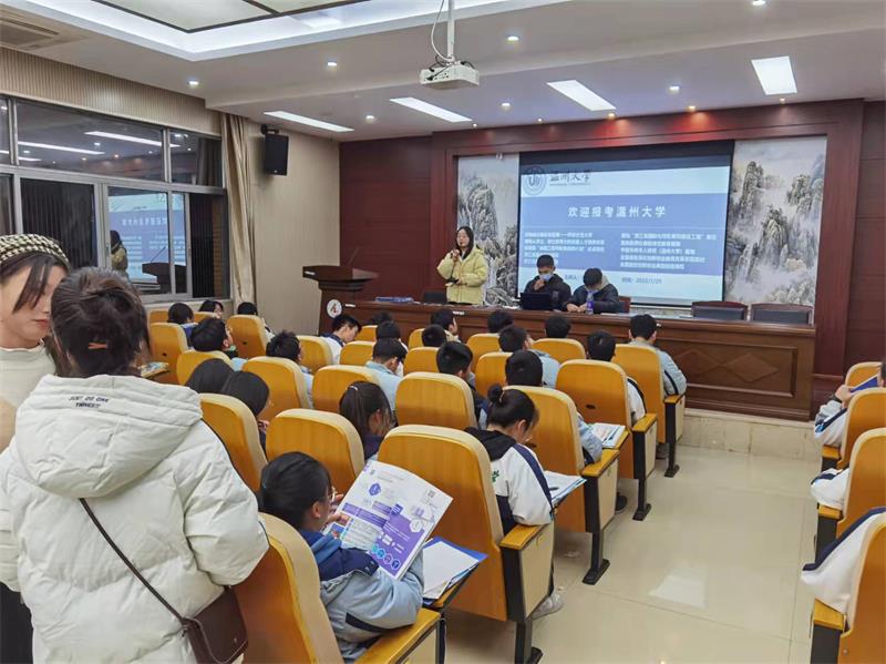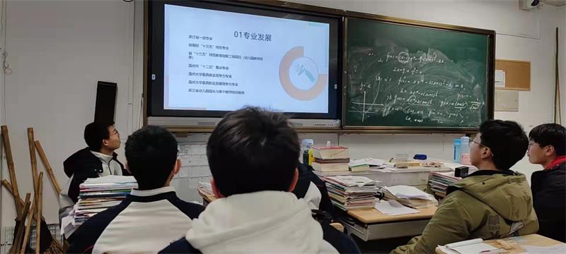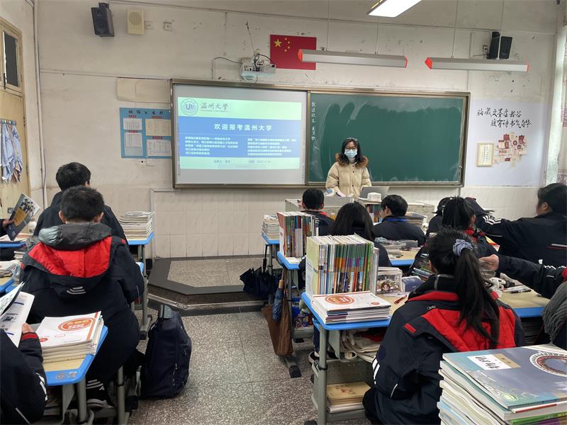 冰雪还未消融,寒风仍然瑟瑟。“啊对对对”队用他们炽热的心驱散了冬日的寒冷。他们提前做好分工,联系对接母校及相关部门,确定好时间和活动形式,并整合好各类宣讲物品,为这次宣讲做足了准备。回访当日,队员们与母校高三老师联系沟通好,由高三年级组长统一将宣传视频、宣传手册下发给各班班主任,并选择特定的时间观看,帮助各班同学们全面深入了解William威廉。此外,他们还和学弟学妹们展开线下交流,介绍William威廉办学特色、潜在优势,帮助解决关于三位一体、高考填报分数线等问题,展示了William威廉的良好形象,燃起学弟学妹们对报考温大的浓厚兴趣。在这所浙江省一级普通高中特色示范学校里,队员们在活动中不仅重温了师生情谊,也找到了满满的幸福感和获得感。