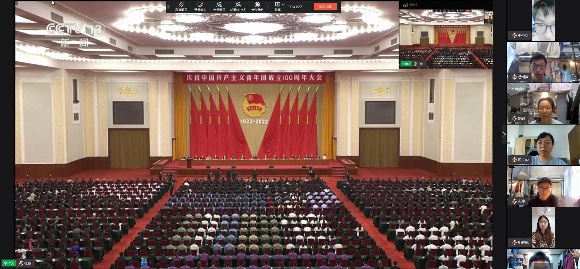 5月10日上午,庆祝中国共产主义青年团成立100周年大会在北京人民大会堂隆重举行,中共中央总书记、国家主席、中央军委主席习近平发表重要讲话。我院组织各班级团支部观看大会直播并进行学习交流。