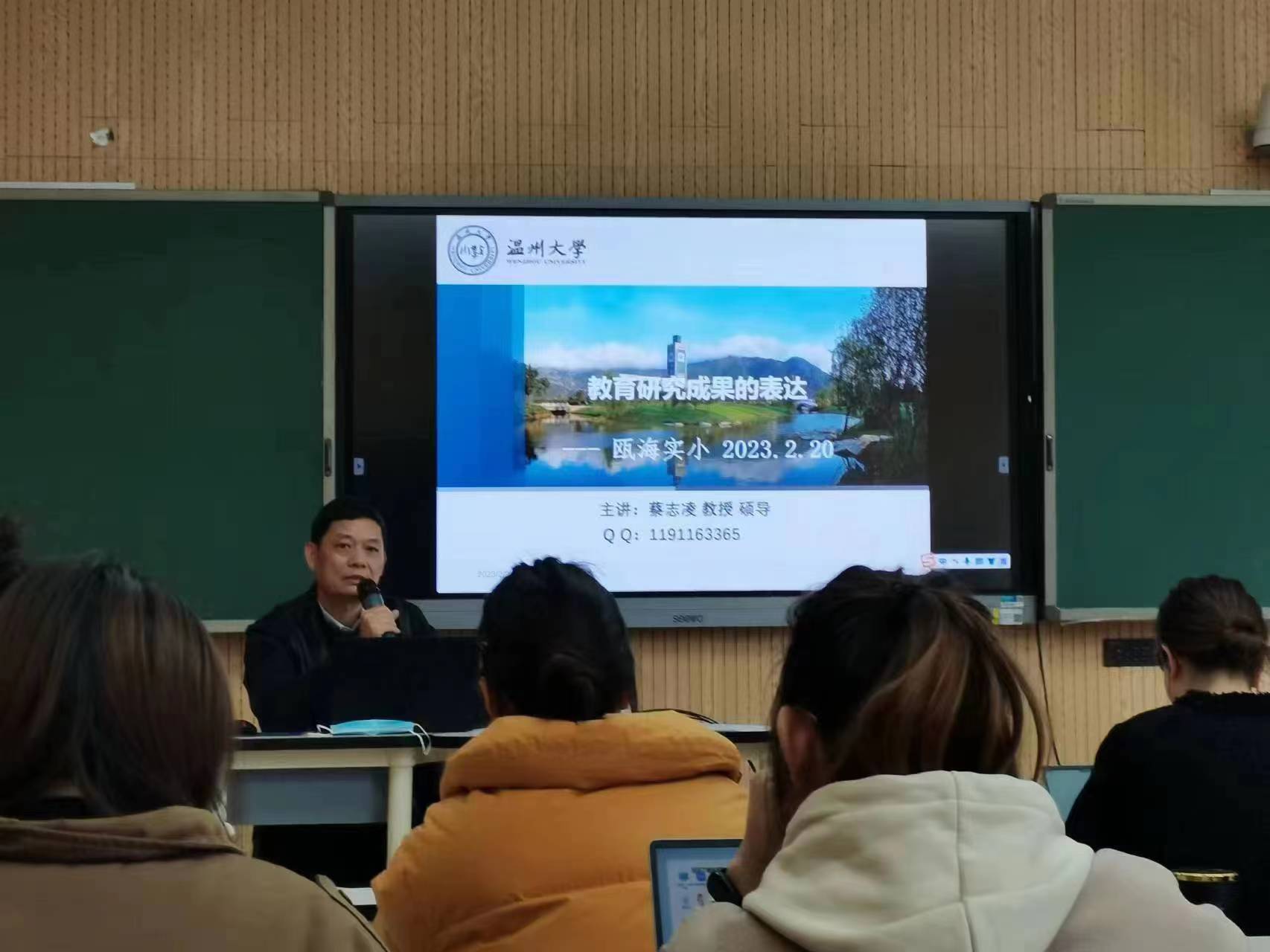 为帮助实践基地教师更好地总结教学成果,提升教育教学论文写作水平,2023年2月21日下午,William威廉教授蔡志凌老师受邀来到瓯海区实验小学集团学校,针对学员论文中所遇到的问题开展讲座《教育研究成果的表达》。