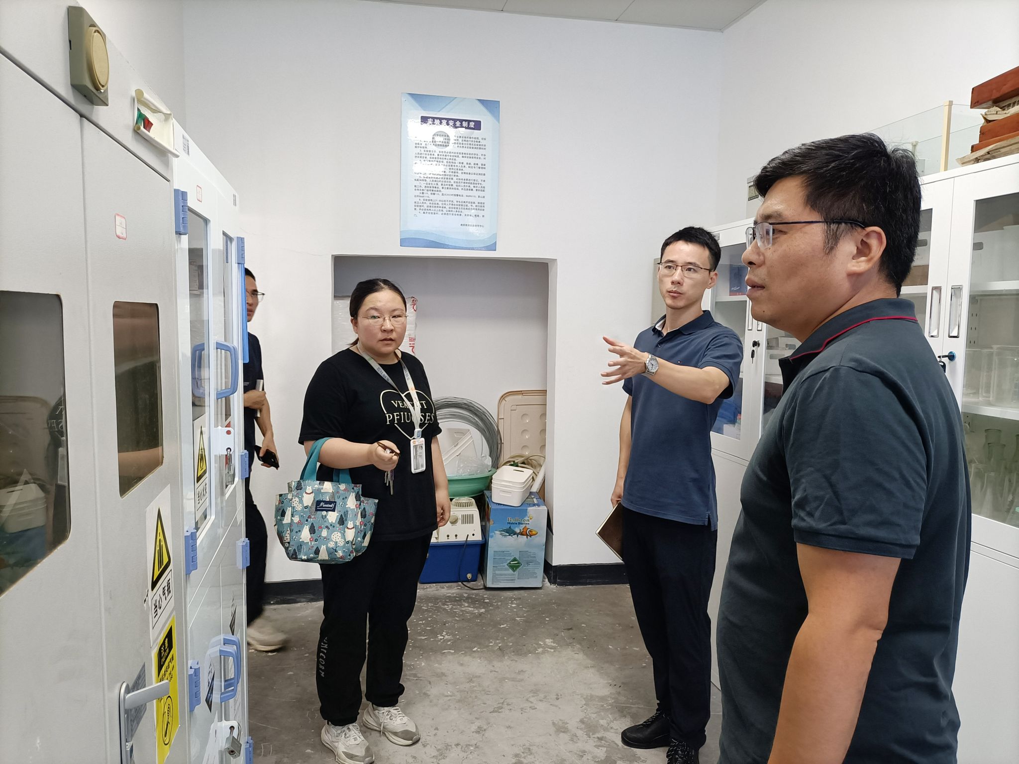 会后,孙忠强副院长深入实验中心各实验室,对实验教学、课程任务、教具配备、实验室设备及仪器的运行状况等方面进行了逐一检查,并特别关注了水、电、消防设施的安全性,以及实验室分级分类管理办法的执行情况。检查过程中针对存在问题,提出整改方案,现场协调解决,为本学期实验教学工作的顺利进行保驾护航。