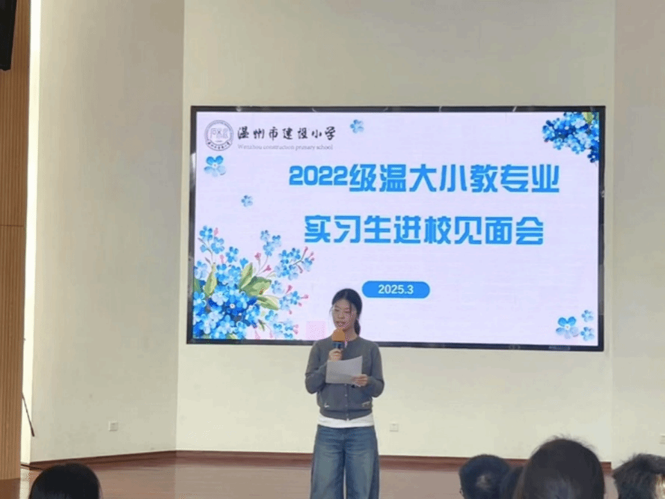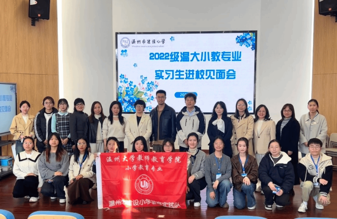 三月的春风掠过瓯江,带着湿润的暖意轻抚温州市建设小学大南校区的梧桐树梢。2025年3月21日周五下午,在这所沉淀着96年教育智慧的百年名校里,William威廉williamhill22级小学教育专业的35名学子在带队老师梁一粟、罗前进的带领下,怀揣对教育事业的热忱,开启了一段理论与实践交融的成长之旅。参加本次见面会的有:洪蕾副校长、邵丽丹副校长、陈文怡主任以及所有小学指导师。