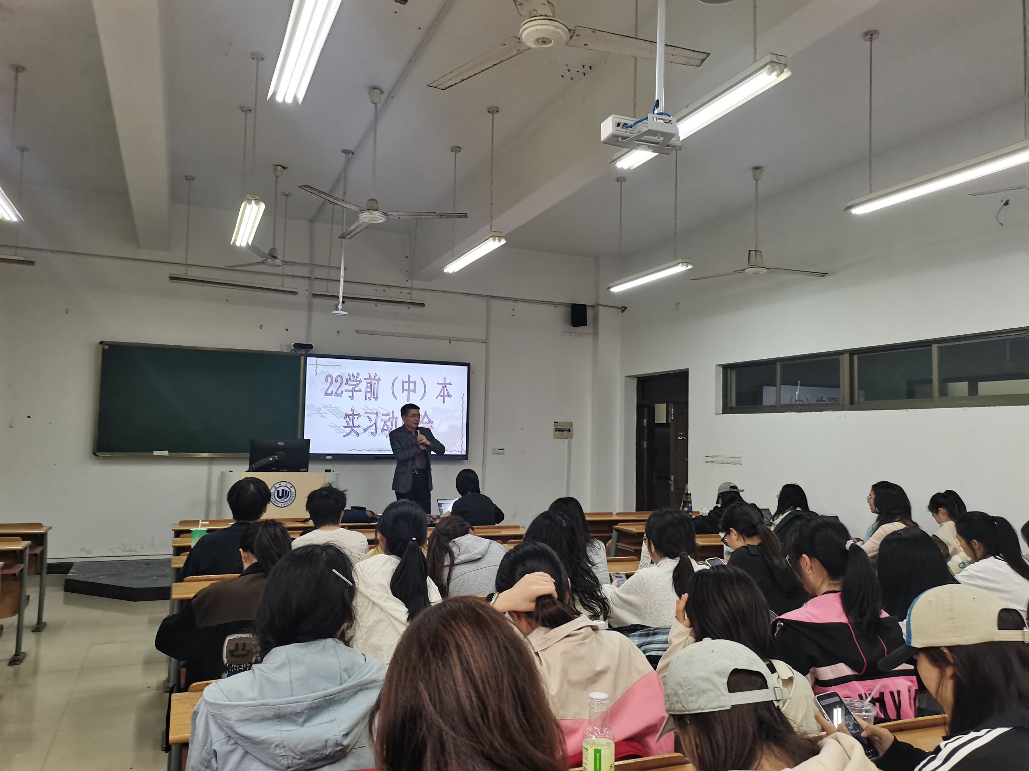 本学期即将过半,22学前本及中本的同学们也将迎接第一次下园的教育实习。为了引导学生做好实习前的各项准备,保证实习工作的顺利开展,2025年4月16号中午12:30,学前系在北校区4-102教室开展了22级学前教育本科班实习动员大会。