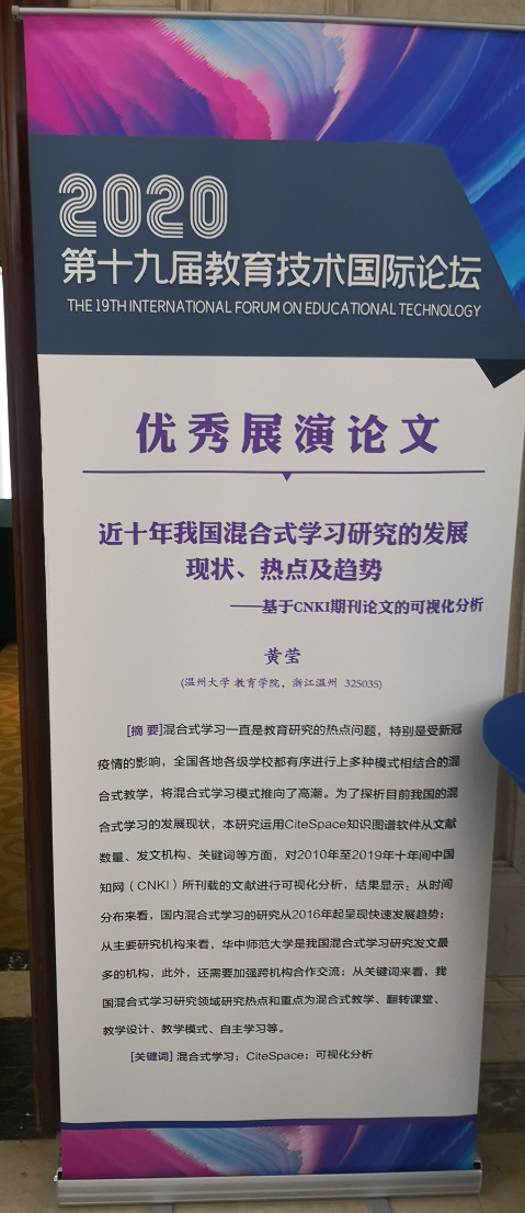 我院(williamhill)教育技术系由杨刚、王佑镁、胡来林、张新立和柳晨晨五位老师带队,共45名研究生参加了此次会议,充分展示了我院研究生参与学术交流的热情。其中,18级研究生陈雨婷的论文《国外虚拟教育应用研究的回顾与前瞻》、19级研究生黄莹的论文《近十年我国混合式学习研究的发展现状、热点及趋势》分别被评为19届教育技术国际论坛(IFET)优秀展演论文,同时受大会邀请分别于分会场作主题发言,两位同学的论文分别在杨刚老师、施永川老师的指导下完成。