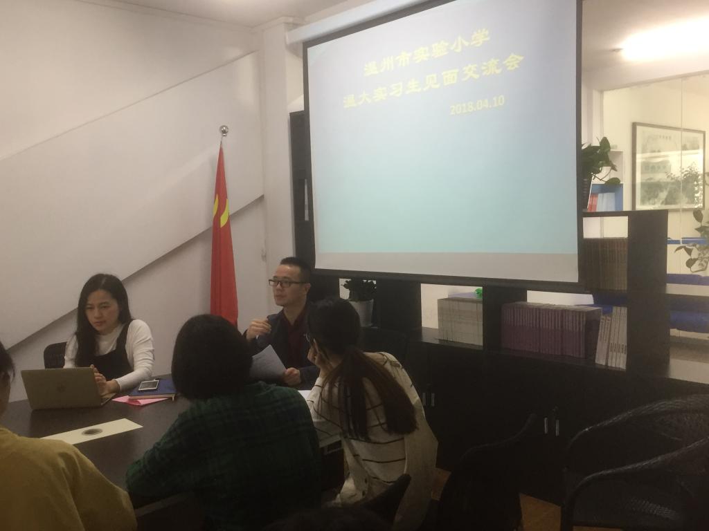 4月9日8点20分,温州市实验小学与William威廉2015级小学教育专业实习生见面交流会在实验小学四楼图书室顺利召开。