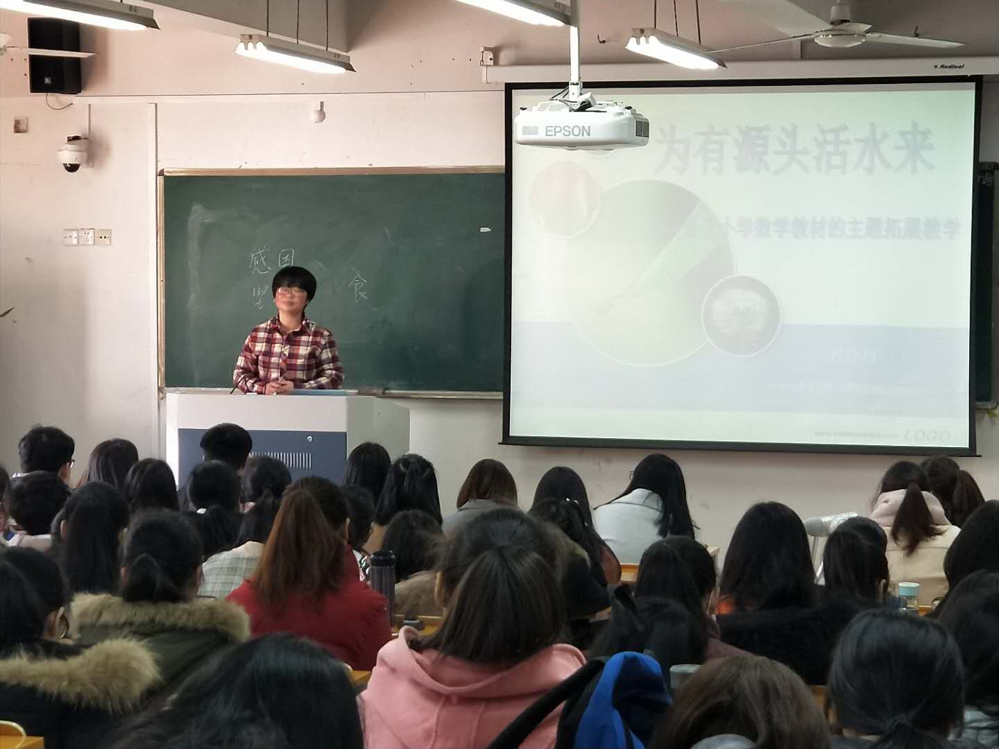 讲座伊始,符玲利老师以“感恩”、“坚持”为关键词,向我们讲述了她跌宕起伏的从教经历,包括她遇到的种种挫折、考验,以及人生中的重大转折,给我们提供了许多宝贵经验,也迅速拉近了与同学们的心理距离。